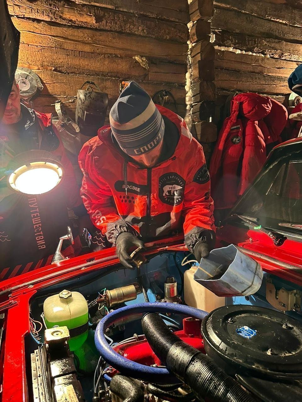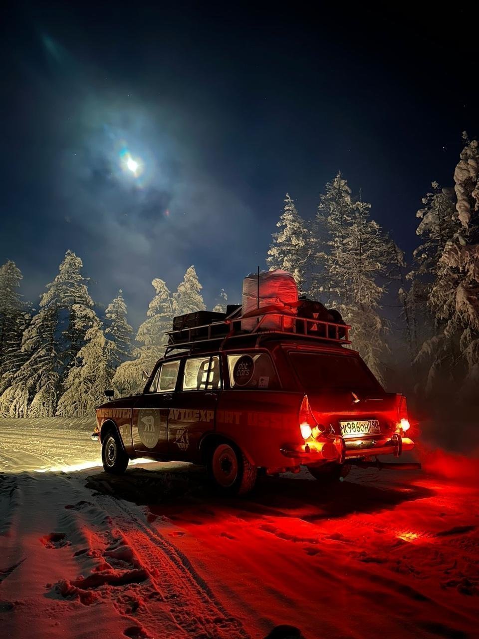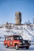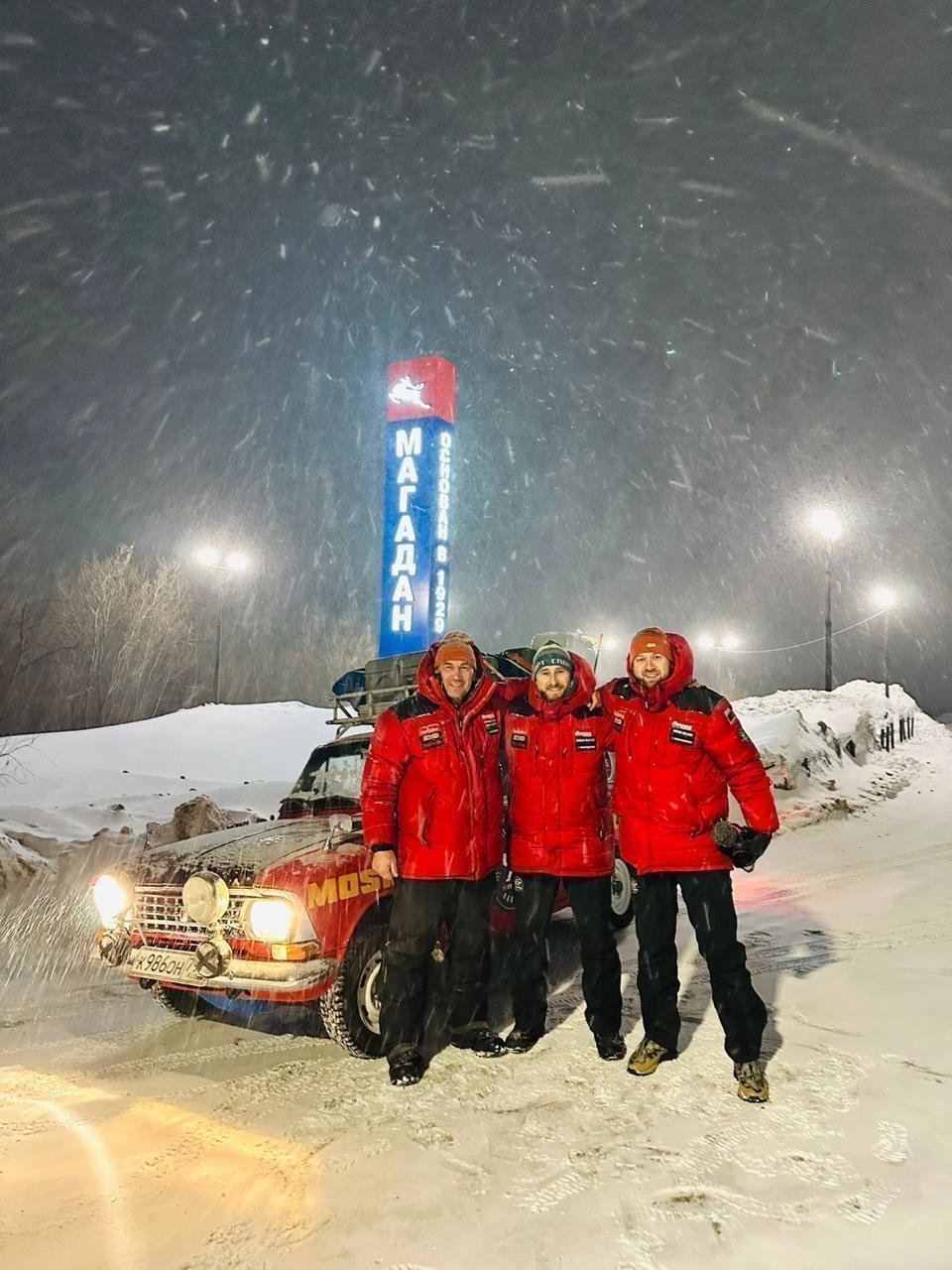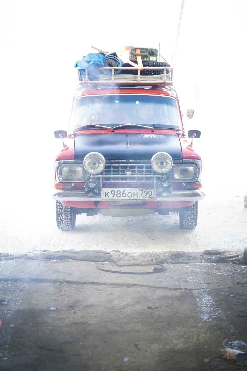 Сегодня, когда за окном торжествует дружная весна, первый этап экспедиции успешно пройден. «Москвич-427» озонировал столичным выхлопом затуманенные февральские улицы Якутска, растревожил своей алой мантией обитателей золотоносной Усть-Неры, вспорол светом раллийных фар заснеженное безмолвие трассы Р-504 «Колыма». В посёлке Оймякон, считающимся одним самых холодных мест планеты, «Москвича» встретила температура минус 57 градусов Цельсия. Конечно, не минус 71 и два, как отмечено на памятной стеле, и всё же. Полюс холода! «Шёпотом звёзд» застывает в этих краях дыхание человека. Здесь же «Москвич» постигла первая и пока единственная поломка: выдавило масло через сальники, а ещё от мороза облезла краска с капота. Как любая жидкость, масло при замерзании расширяется. Зато ремонт в походных условиях добавил несколько колоритных кадров в портфолио экспедиции. Ну а после Усть-Неры путешественники проехали по нетронутому колесами моноприводной техники зимнику и через Сусуман наконец-то добрались до Магадана.