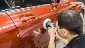 Желаемый внешний вид ремонтируемый участок ЛКП приобретет после полировки. Сначала в полировальную машинку вставляют жесткий поролоновый диск и ведут обработку на низких скоростях вращения (около 800 об/мин), используя полировальную пасту стандартного типа. Для окончательной доводки применяют финишную полировальную пасту и увеличивают обороты инструмента до максимальных (2000 об/мин). Всё! Протерев место ремонта влажной салфеткой, вы увидите идеально ровную поверхность лака или краски, практически неотличимую от остальных участков ЛКП.
