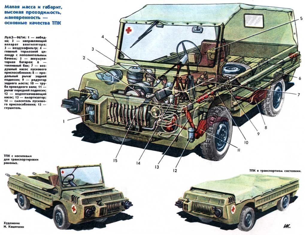 Машина первое время ломалась беспощадно, потому что мотоциклетный двигатель к ней не подходил. Сделали ей потом клиренс больше 300 мм (больше, чем у УАЗика). Научили ее все-таки плавать, поставили запорожский мотор. Сначала хотели делать машину в Ирбите, там, где выпускали мотоциклы, но потом Никита Сергеевич решил, что нужно подымать украинскую промышленность и передали эту машину для производства в Луцк. К тому времени был создан Луцкий завод, изготавливающий гражданский автомобиль «Волынь». И вот там сделали ЗАС или ЛУАЗ 967М, который был плавающим, у которого была лебедка и полный привод. Правда, на первых образцах не было помпы, поэтому они тонули через 40 минут. Милитаристы поворчали, так как получили не совсем то, что хотели, но машинка все-таки проходила без капремонта 30 тысяч км, плюс фантастическая проходимость и умение плавать. В результате, этот автомобиль был принят на вооружение еще до окончания государственных испытаний. Здесь, конечно, большая заслуга Фетермана, который не обиделся на государство и сделал эту машину. Она, к слову, потом еще долго побеждала на всяких международных соревнованиях, когда ее уже сняли с вооружения.