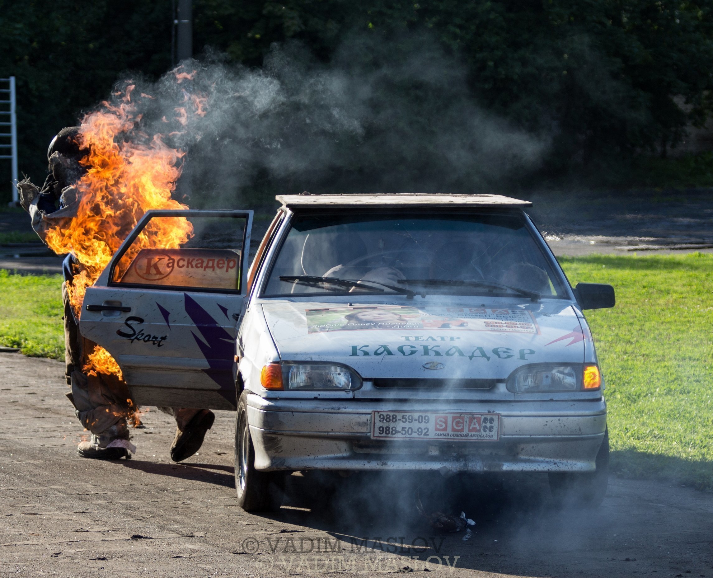 Кстати, практически все номера, связанные с риском для жизни и здоровья исполнителей, выполнялись только на отечественных автомобилях.