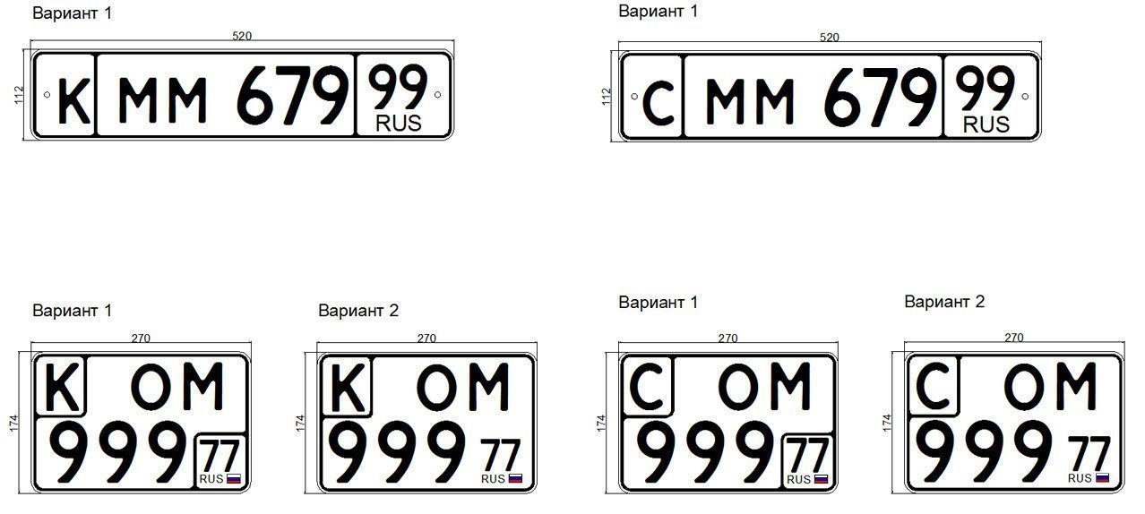 В интернете опубликованы изображения государственных регистрационных знаков нового образца. Пока это предварительные эскизы, однако, возможно именно они будут основой для новых знаков. Кроме того, могут ввести нормативы для расположения отверстий для крепления табличек. Итак, вот что предлагают для различных типов транспортных средств: