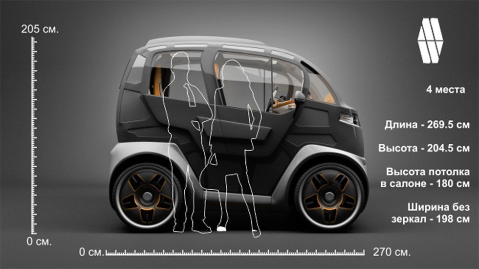Внешне автомобиль напоминает всем известный «Смарт», но по габаритам он все-таки чуть-чуть меньше. Кузов планируется изготавливать из переработанных полимеров на 50%.